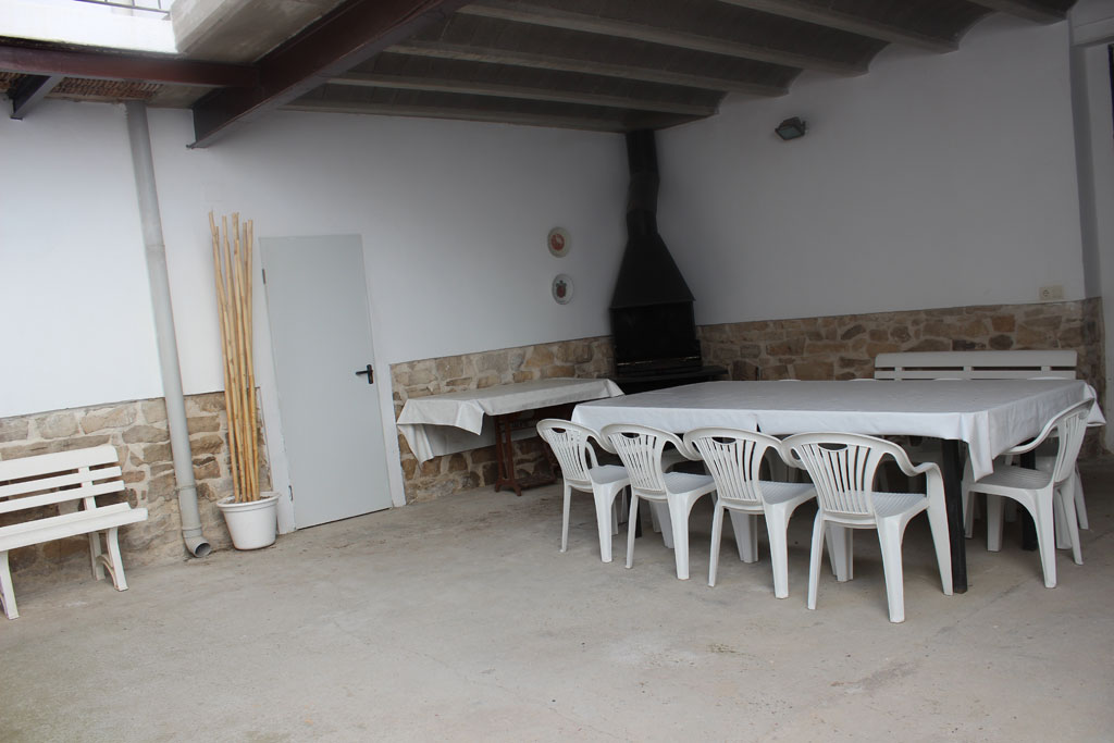 Dispone de una barbacoa, donde podréis asar las más exquisitas comidas, una enorme mesa en la cual degustareis los platos que aséis en la barbacoa y una pequeña zona de juego con canasta, diana, patinete, un futbolín donde podréis hacer retos toda la familia o amigos, y todo ello armoniza con plantas verdes, que da un toque de jardín al patio.